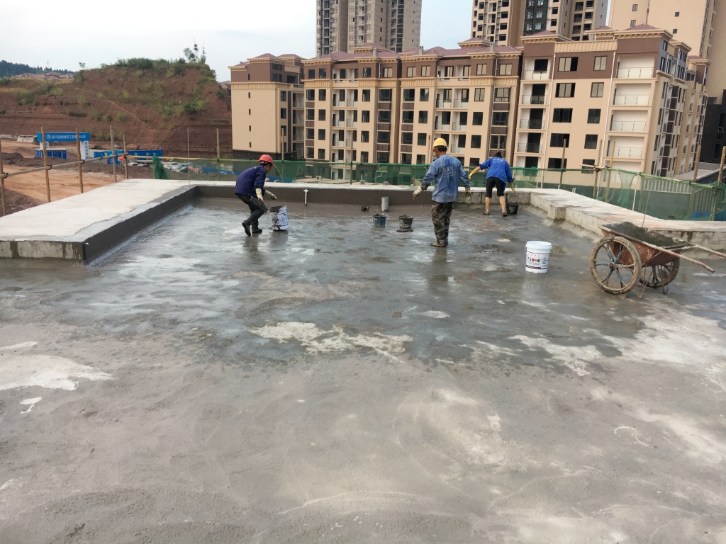 本公司2018年9月承接的大英碧桂園售樓部屋面防水工程施工業(yè)務,大英碧桂園屋面防水采用的施工方法是,基層表面清理干凈,涂刷聚合物水泥防水涂料,然后再鋪貼高分子自粘防水卷材(反應粘型),雙層防水達到萬無一濕的效果。屋面防水施工后進行閉水試驗,檢測無問題之后再進行后續(xù)下道施工工序的。